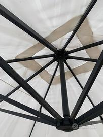 Ombrellone da giardino decentrato 3*4 color bianco ecru'. L'ombrellone e' inclinabile e rotante e di alluminio. Acquistato un anno fa e in ottimo stato. Venduto con le piastrelle sottostanti che fanno da contrappeso. Smontaggio e trasporto a carico dell'acquirente.