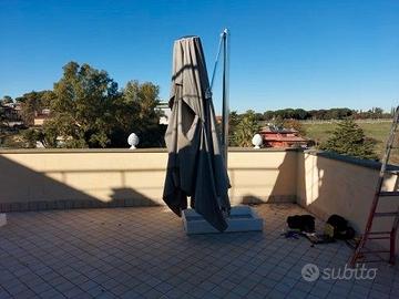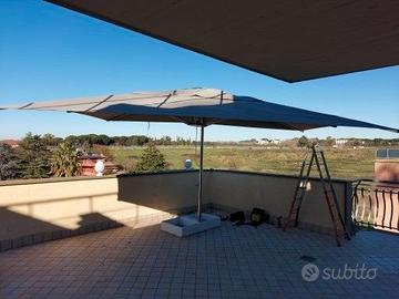Materiale : (Metallo, Tessuto) Dimensioni : Ø 300 cm - H 280 cm - Mât Ø 4,8 cm - Base : L 119 cm x larg 54 cm x H 17 cm Peso : 32 kg Caratteristiche : Tela impermeabile con trattamento anti-UV e antimuffa - Base rimovibile che si fissa al palo