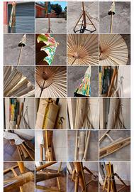 Ombrellone e Piedi BAMBÙ Etnic floreale carta riso