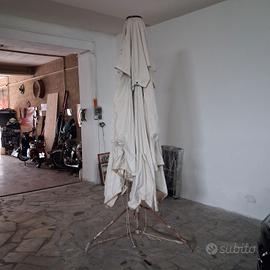 vendo ombrellone estivo / campeggio con struttura in legno in ottime condizioni con apertura con filo, e treppiede pieghevole. altezza 2.50M circa area apertura 2,30M. prezzo trattabile, no spedizione.
