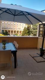 Ombrellone da giardino a braccio laterale senza alcuna imperferfezione come da foto (aperto solo 2 volte). Misure(LxLxH):300X300X240. Incluse nell'offerta anche 5 basi in cemento, Marca Elios, struttura 100% in alluminio dedicato anche a strutture pubbliche(bar, piscine, etc) Tessuto brevettato x protezione UV. Dotato di pedale alla base per orientare l'ombra a 360° ( rimovibile es. Per i bar) e regolazione ombra in verticale. Stecche antivento rinforzate (15x21 mm). Soffietto antivento. Colore esterno panna.