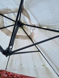 Ombrellone giardino esagonale 3 x 3 mt Struttura in buone condizioni, telo rovinato e strappato in alcuni punti (v. foto) da sostituire