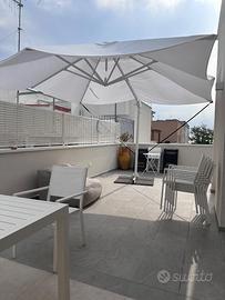 Vendo splendido ombrellone da giardino con palo laterale e telo bianco, modello Porto Cervo.