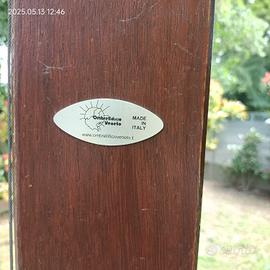 Grande OMBRELLONE da esterno copre una superficie di 18 metri quadrati composto da due ombrelloni indipendenti misure 3x3 metri con base contrappeso da 12 quadrotti di sasso lavato.Le tele rosse con greca profilata bianco sono nuove e della TEMPOTEST. Il palo portante è anti ingombro perché laterale non centrale ideale per Bar Ristoranti Gelateria .La struttura dell'ombrellone è in Alluminio nero e Legno colore noce