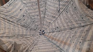 ombrellone grande diametro 320 cm e lunghezza 220 cm, sedia sdraio in legno pieghevole e salvagente in sughero per veri interessati no perditempo.