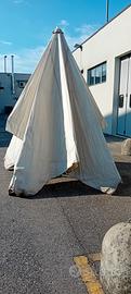 vendo causa inutilizzo ombrellone x ambulanti o x giardino 5m.x4m. alto m. 320 telo tutto bianco compreso di tre piedi rinforzato,