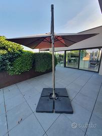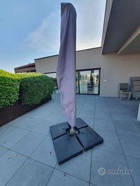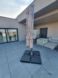 Ombrellone retrattile basculante 3m x 3m, braccio laterale in alluminio, base posteriore e camino antivento, possibilità di inclinare il telo a diverse inclinazioni per la migliore protezione dal sole, telo resistente in poliestere rivestito.