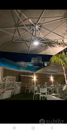 OMBRELLONE SWING 7X7 TELAIO ALLUMINIO COLOR MANGANESE A TESTA RETRATTILE - T/ PACIFIC NAUTICO- COMPLETO DI BASE E ZAVORRE - CON 4 ANELLI LED.