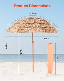• Vendo da negozio, solo articoli Nuovi e Certificati SPECIFICHE ↓ Copertura solare ideale: questo ombrellone tiki è dotato di una copertura di 2 metri che può essere facilmente inclinata di 30° a sinistra o a destra, permettendoti di trovare l'angolazione ideale senza dover spostare l'ombrellone Facile da montare: l'ombrellone tiki in paglia include istruzioni di montaggio chiare e dettagli di design intuitivi. Premi il tappo di collegamento per montarlo rapidamente, dandoti più tempo per goderti l'ombra fresca che porta nel tuo spazio esterno. Nota: la base non è inclusa Materiali resistenti: il nostro ombrellone in paglia ha un esterno in stile paglia e un tessuto in poliestere traspirante spesso 140 g per un'adeguata protezione solare Comodo da usare: questo ombrellone da spiaggia tiki si apre e si chiude manualmente con un movimento fluido a spinta e trazione, richiedendo il minimo sforzo. Il design regolabile in altezza si adatta a piccoli patii e ampie aree lounge all'aperto Portatile e facile da riporre: l'ombrellone da giardino tiki presenta un design staccabile e una struttura leggera in lega di alluminio, che lo rende facile da trasportare e riporre