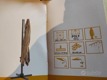 ombrellone parasole con manovella, asta in alluminio e montanti in acciaio, colore antracite, rivestimento in poliestere colore mocca, base senza piastre di cemento. Ancora confezionato. Possibile consegna da concordare.