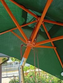 Ombrellone da Giardino 2x1.5 mt Rettangolare in Legno Bambù Telo in Poliestere Anti UV colore Verde tiranti di facile apertura come per la chiusura si può inclinare sia a destra e che a sinistra tramite un pulsante posto nel palo diviso in 2 pezzi avvistabile robusto presa d'aria in alto nel telo più la base porta ombrellone con regolazione e blocco del palo il tutto nuovi imballati nella sua scatola originale aperti entrambi montati e rinchiuso il tutto nella scatola per errato acquisto per info contattatemi..