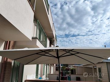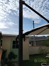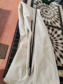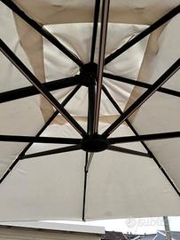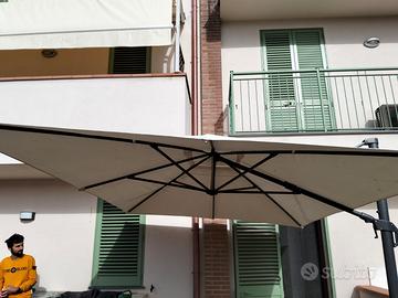 Ombrellone con base e copertura Leroy Merlin di soli 3 anni, orientabile a 360 gradi e recrinabile tramite pedalina, regolabile anche in altezza, luci led con pannellino solare. Struttura solida e resistente alle intemperie. Qualche segno di usura sui piedi dell'ombrellone. Prezzo trattabile