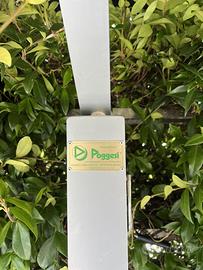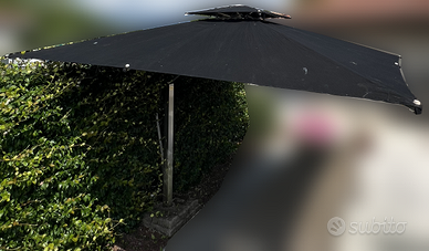 Ombrellone da giardino Poggesi 4x4 metri, colore nero, con palo laterale e base inclusa. Realizzato in resistente tessuto di tela (non impermeabile), offre un’ampia zona d’ombra ideale per un tavolo da esterno con 6-8 sedie, una piccola area lounge o un angolo relax per lettura e aperitivi.