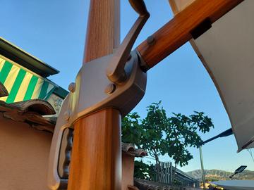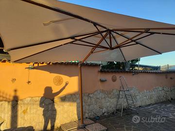 Ombrellone pari al nuovo professionale, usato per una estate,color legno alluminio. Pagato nuovo 320euro.