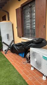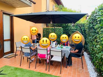 Vendo ombrellone decentrato 286x286cm come nuovo, già montato e pronto all'uso. È il modello reclinabile, quindi puoi orientare l'ombra come preferisci durante la giornata. tutto incluso a soli 150€: • ombrellone reclinabile (struttura robusta e telo perfetto). • basi in cemento pesanti incluse nel prezzo. • telo di copertura per l'inverno in omaggio. Vendo per inutilizzo. Vero affare. Ritiro a mano.
