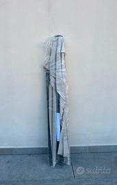 Ombrellone a mezzaluna nuovo nel suo imballo. Si apre e chiude con una comoda manovella. Ideale per spazi ridotti (terrazzi o balconi). Misure: Larghezza 270 Profondita 135 Altezza 230 Diaponibile per il ritiro a Milano in zona Solari.