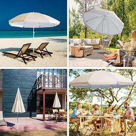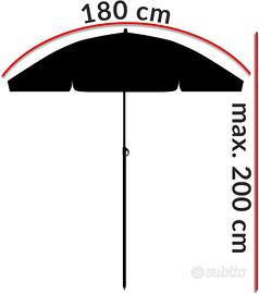 DETTAGLI PRODOTTO: Dimensioni: 180cm // Colore: Beig // Ø Palo: 25mm // Altezza regolabile min.-max.: 140 - 200 cm // Altezza ombrellone diviso in due parti: 100cm // Materiale palo: Acciaio verniciato a polvere // Materiale tela copertura: Poliestere (protezione UV 50+)
