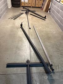 Ombrellone - Tenda parasole per giardino. Consiste di due sostegni verticali che reggono una trave orizzontale. Sulla trave si innestano sette bacchette per lato, che sostengono la tenda scorrevole Dimensioni 3,60 x 2,50 Date le dimensioni, ritiro in zona a cura dell'acquirente