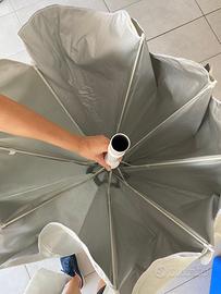 Vendo ombrellone da terrazzo, giardino o spiaggia con custodia. Praticamente nuovo, usato pochissimo. Diametro 170 cm. Antivento con aereazione superiore. Colore beige. In regalo anche la base in plastica. Consegna a mano