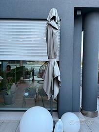 Vendo ombrellone musura 2,5mx2,5m, come visibile in foto, la tela con il sole si è scolorita. Acquistato da Bardin Garden Center, nel prezzo sono inclusi anche i piastroni in cemento