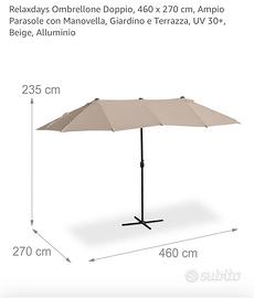 Ombrellone da giardino tre testate come da foto comprato fine estate non idoneo x zona ventosa. “No base” vero affare !!