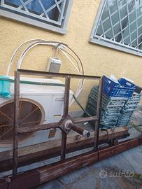 Ombrelloni con braccio di legno, 4x4 mt abbondanti , sono un pochino usurati ma con un po di coppale e nutrimento legno, tornano in funzione. Una stecca di uno è rotta, ma se uno la sa aggiustare torna funzionante