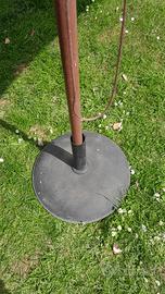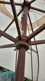 COPPIA ombrelloni nuovi con confezione originale. Mai utilizzati. Misura cm 285 x cm 190. Altezza regolabile con chiodo in asta di legno massiccio. Telaio e bacchette in legno con asta. angoli tessuto ri forzati. Base in ghisa in confezione originale leggi note in fotografia. Il prezzo si riferisce al totale composto da quattro elementi due ombrelloni due basi.