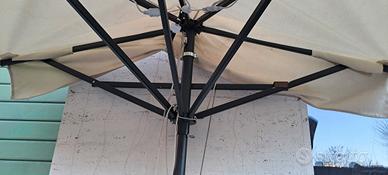 3 ombrelloni da muro con barra anti vento e porta ombrellone in ferro più luci a led in ottimo stato pre. 350 l uno visto e piaciuto