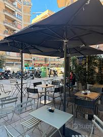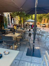 Ombrelloni in alluminio telo nero in tempotest, resistenti e professionali adatti al vento, con occhielli in alto per aventuali agganci di coperture laterali. Come nuovi usati pochi.