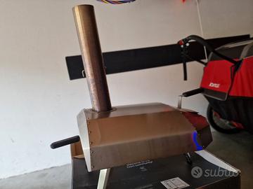 bellissimo forno, funziona a carbone, pellet e gas (serve un accessorio). usato pochissimo completo di pietra ollare, palino per girare la pizza e per infornare.