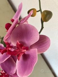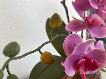 Orchidea in vaso di legno, altezza totale (vaso + pianta) di circa 50 cm. Facile da pulire, basta un pennello.