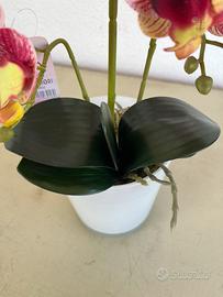 Orchidea decorativa in vaso di vetro, altezza totale (orchidea + vaso) di circa 60 cm. Facile da pulire, basta un pennello.