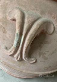 Orcio in terra cotta Ugo Poggi del 1997 più vaso alto. Dimensioni: h 100 x diametro 83 cm Capienza 315L