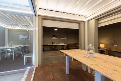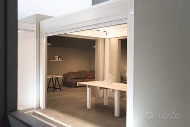 Per cambio ESPOSIZIONE SHOWROOM vendiamo pergola autoportante a telo retrattile in piano, brand KE, modello ISOLA 2 (sempre stata all'interno dello showroom), colore bianco, motorizzata Somfy.