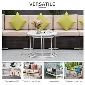 Outsunny Set 2 Tavolini da Salotto e Giardino Salvaspazio Sovrapponibili, Tavolini da Caffè in Ferro, Bianco