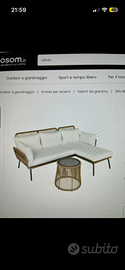 Presente tessuto di rivestimento per quasi tutto il divano (facilmente removibile se non di interesse) e stoffa per terminare, volendo, l’ultima seduta.