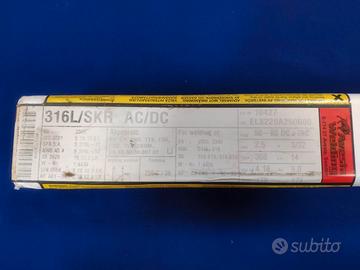 Vendo pacco interamente sigillato contenente elettrodi per la saldatura dell’acciaio inox 316L diametro 2,5 mm. Peso del pacco 4,4 kg.