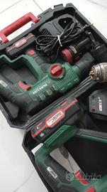 1 trapano a percussione 12v con due batterie, 1 da 2ah e l'altra da 4ah e caricabatteria