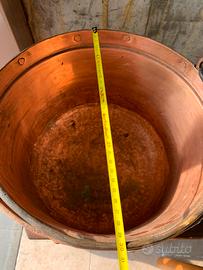 Paiolo in rame autentico realizzato a mano, con manici in ferro pieno, un dettaglio raro oggi.