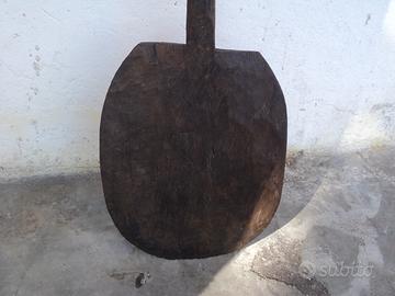 pala da pizzeria antica in legno duro di quercia restaurata a cera epoca 800 con n di riferimento XA