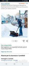 Pala da neve con ruote, mai montata e usata, ancora nell'imballo originale di amz. Proposta anche per utilizzarla con le foglie. Costo di acquisto 79,99 euro