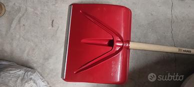 Pala in plastica rossa, adatta per la neve e altri utilizzi. - Lama in metallo. - Manico in legno.