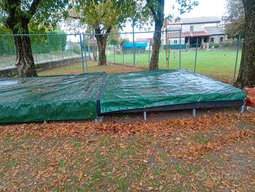 Vendo palco lunghezza 750 cm altezza 50 cm e larghezza 360 cm, non serve documentazione dato che è più basso di 80 cm. Rivestito con grigliato in vetroresina e moquette nera sopra.