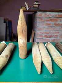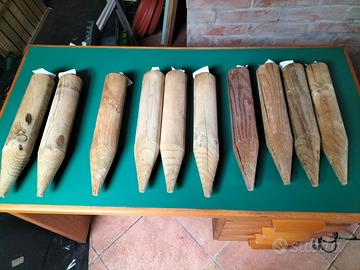 Vendo 12 paletti in legno in autoclave nuovi mai usati per giardino o altro, per costruire recinzioni o da usare come piedini per comporre pedane per vasi di piante/fiori non troppo pesanti. Lunghezza 30 cm ( punta compresa) , diametro 5,5 cm. Preferibilmente in blocco a 15 euro. NON SPEDISCO. Solo ritiro a mano