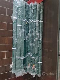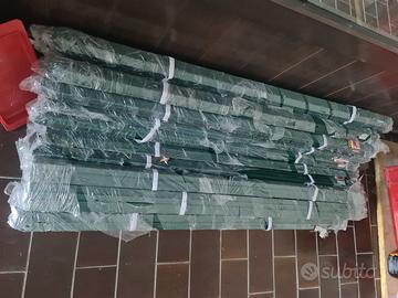Vendo 130 paletti per recinzione in ferro plastificato verde, sezione a "T" da 30x30x3 mm, altezza 125 cm. Tutti i pezzi sono nuovi, mai utilizzati e ancora imballati. Si tratta di materiale acquistato in eccesso rispetto al necessario per un progetto recente.
