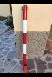 Vendo 4 paletti in metallo completi di base per fissaggio. Nuovi, mai usati. Perfetti per recinzioni di posti auto, resede, giardini, cortili...
