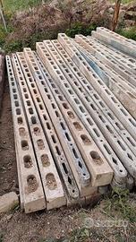 Pali in cemento usati, ma in ottime condizioni, utili per recinzione di orti e giardini. Lunghezza 350 cm, base circa 18x15. Disponibili 60 pezzi in stock o vendita frazionata. trasporto a carico dell'acquirente. Prezzo cadauno € 15, trattabile per stock.