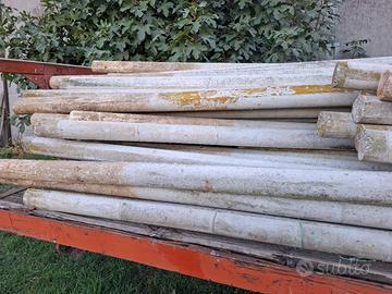 Vendo pali di cemento in ottime condizioni tolti da un vigneto. I pali sono lunghi circa 320cm, rotondi con diametro 9cm. Non sono di forma perfettamente circolare, ma una parte della circonferenza è piatta, in modo che, se dovete tirare fili o recinzioni, appoggino pari (vedi foto). Sono animati internamente da 6 cavi di ferro a loro volta formati da 3 fili ognuno.
