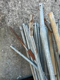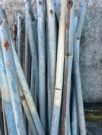 Pali di ferro zincati da 2 m, con difetti o piegati, circa un centinaio. Si possono tagliate con flessibile e adattare la misura in base alle esigenze. Diametro da 2,5 a 3,5 cm.