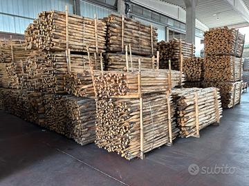 Pali in castagno scortecciato (disponibili anche torniti) di varie altezze e diametri.